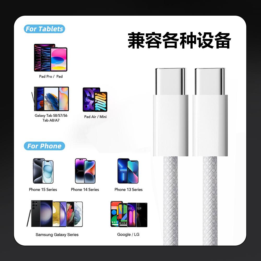 240W 快充编织数据线 TYPE-C / USB-C 转 TYPE-C / USB-C 白色 线长2M