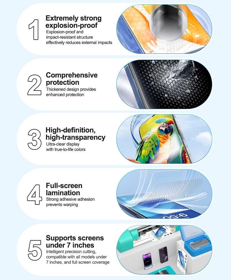 SUNSHINE SS-TP350 高清防爆水凝膜 一盒 50PCS 用于 7.0寸 手机 通用型 (用于新讯 SS-890C 智能切割机)