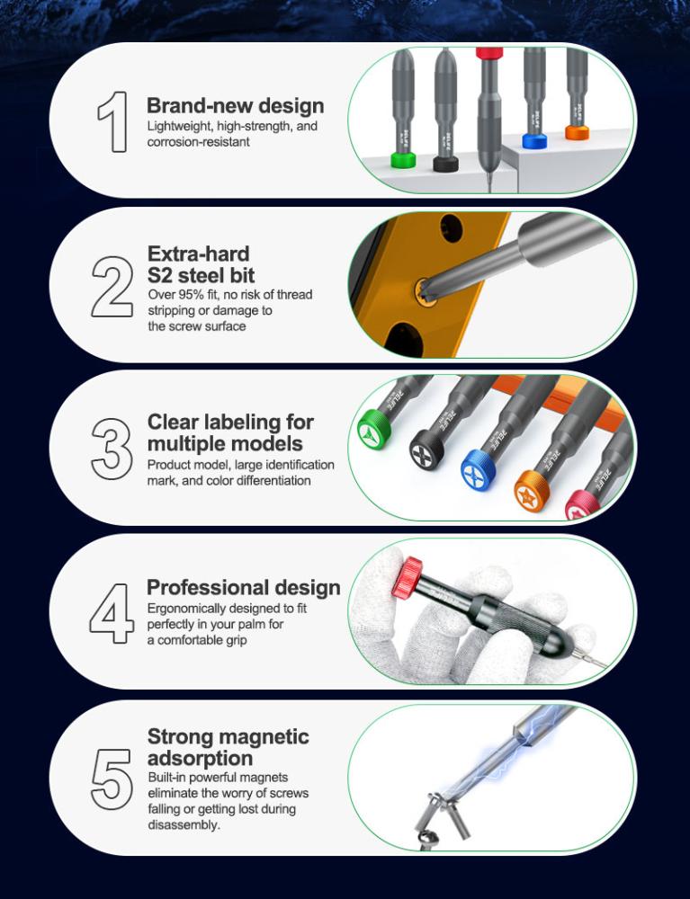 RELIFE RL-717A 火箭头螺丝刀套装 (0.8MM 五角 / 1.5MM 十字 / 0.6MM 三角螺丝刀 / 2.5MM 针头十字 / IP17 六角)