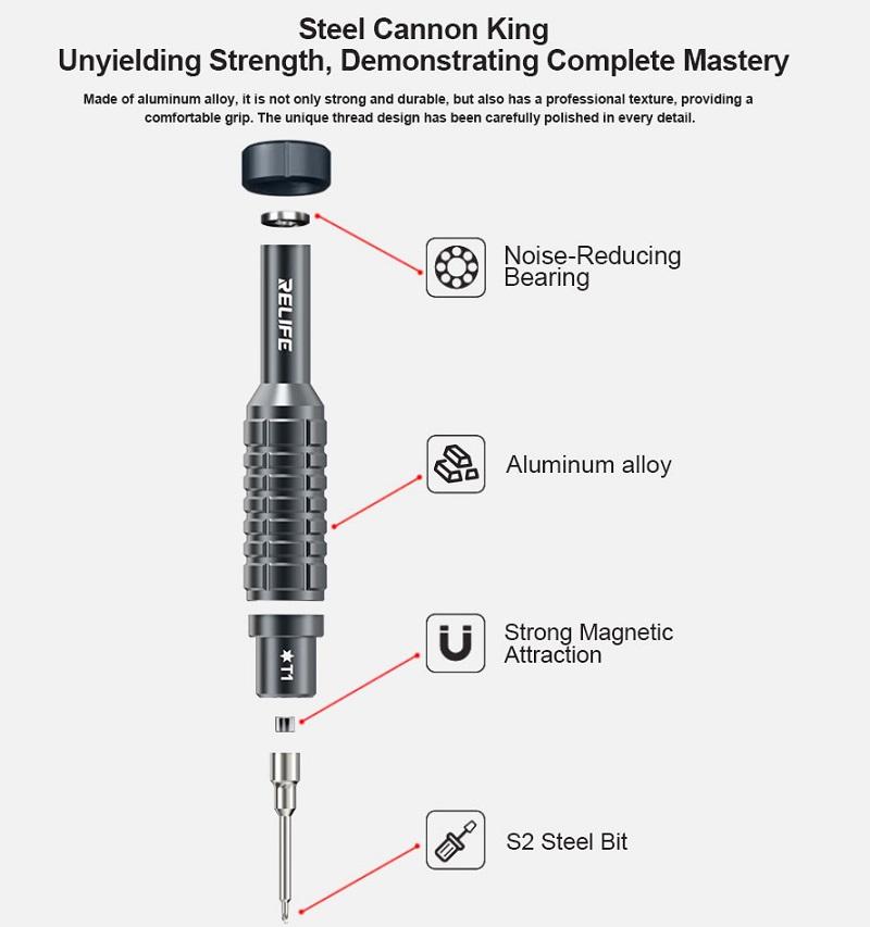 RELIFE RL-730 钢炮王经典系列螺丝刀 适用于 IPHONE 17 / 17 AIR / 17 PRO / 17 PRO MAX