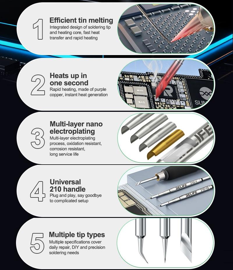RELIFE 210 烙铁头套装 (210-I / 210-IS / 210-K) 适用于市场上95%的210系列手柄