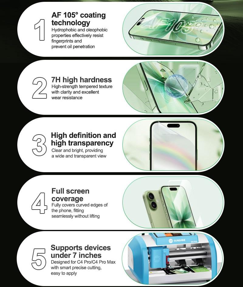 RELIFE GF-7HA 防爆高清水凝膜 一盒 25PCS 用于 7.0寸 手机 通用型 (用于新讯 C4 PRO / C4 PRO MAX 智能切割机)