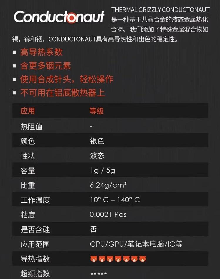 THERMAL GRIZZLY TG-C-001-R 液态金属散热硅脂 1G (注意 不可用在铝底散热器上)